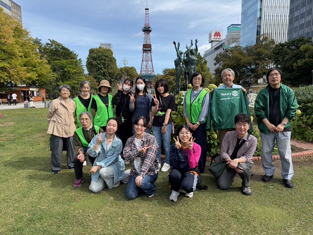 9月7日雨のため中止になった彫刻清掃が実施されました。当日は大通公園ロータリークラブから3名、藤女子大学から7名、友の会からの5名が3つのグループに分かれての作業となりました。